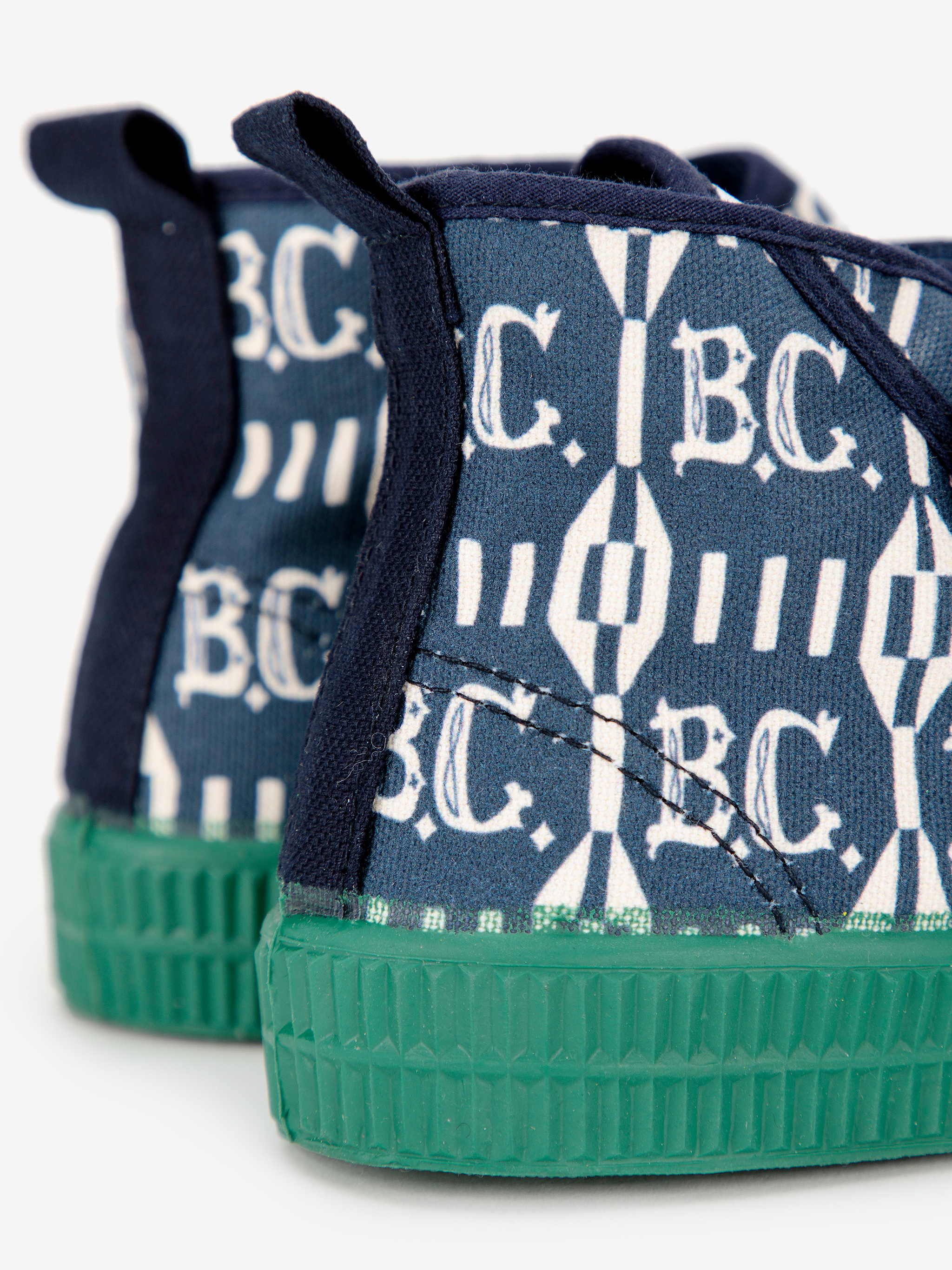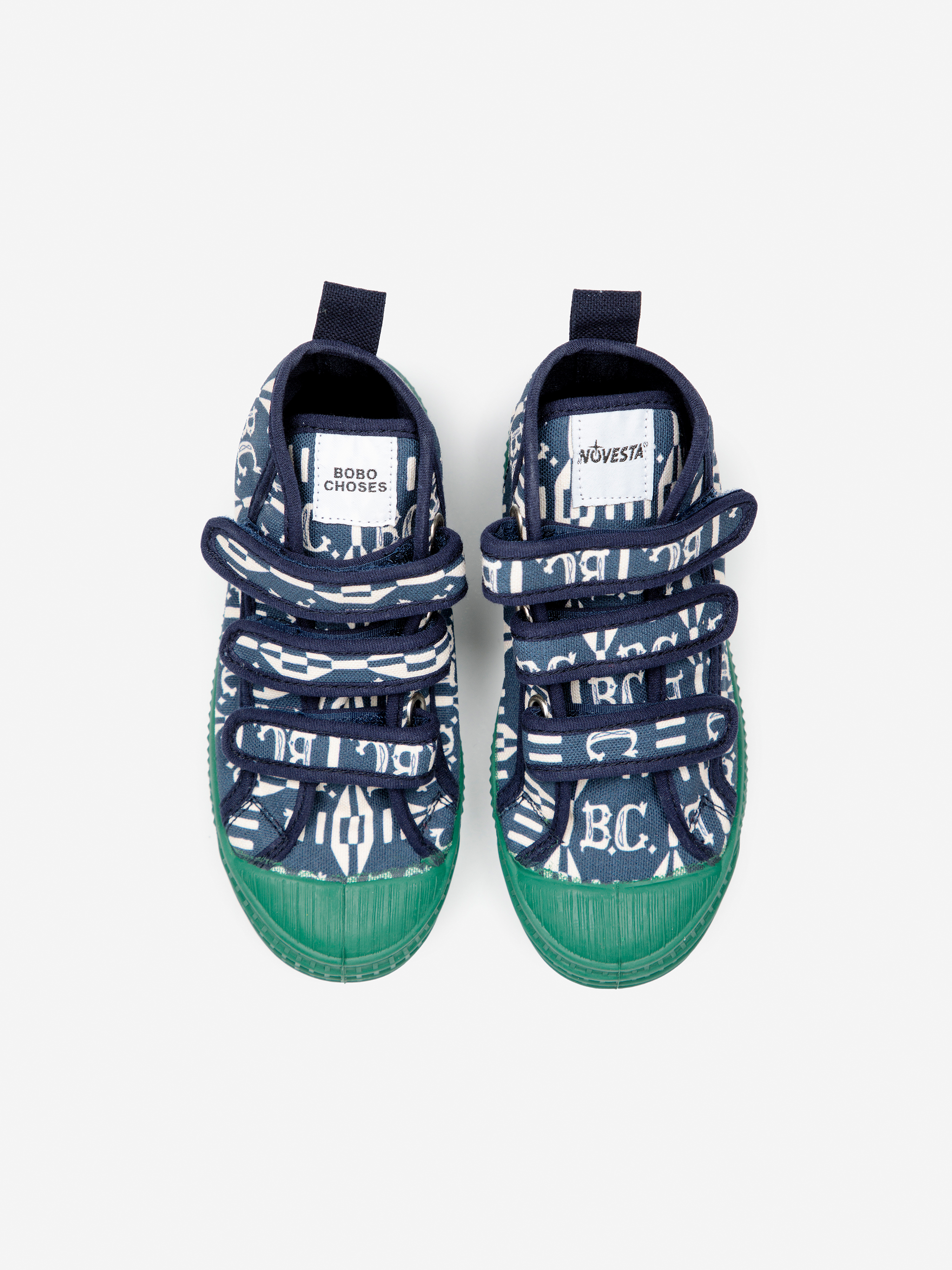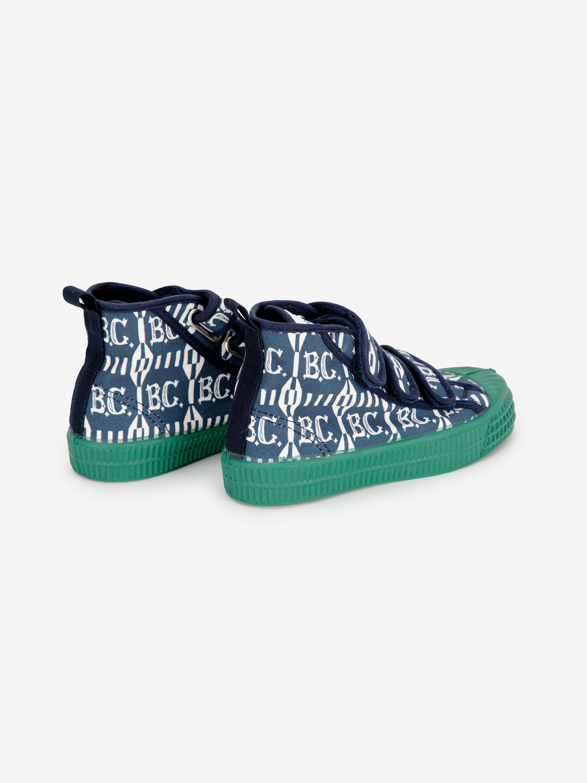 B.C Vintage all over high sneakers by Bobo Choses is a soft sneakers that brings comfort to every adventure. Designed for play, rest, and everything in between. Available in size 25.