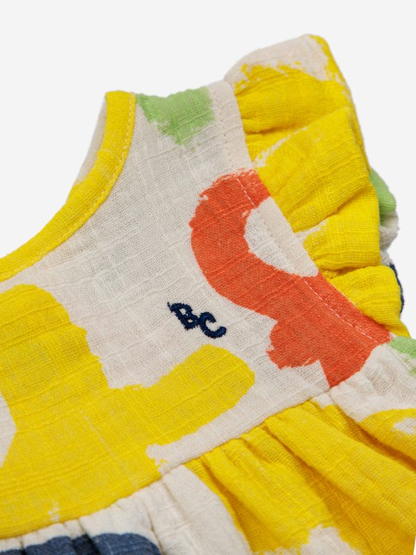 Baby Carnival all over ruffle woven dress by Bobo Choses is a soft dress that brings comfort to every adventure. Designed for play, rest, and everything in between. In a gentle white tone Available in size 18M.