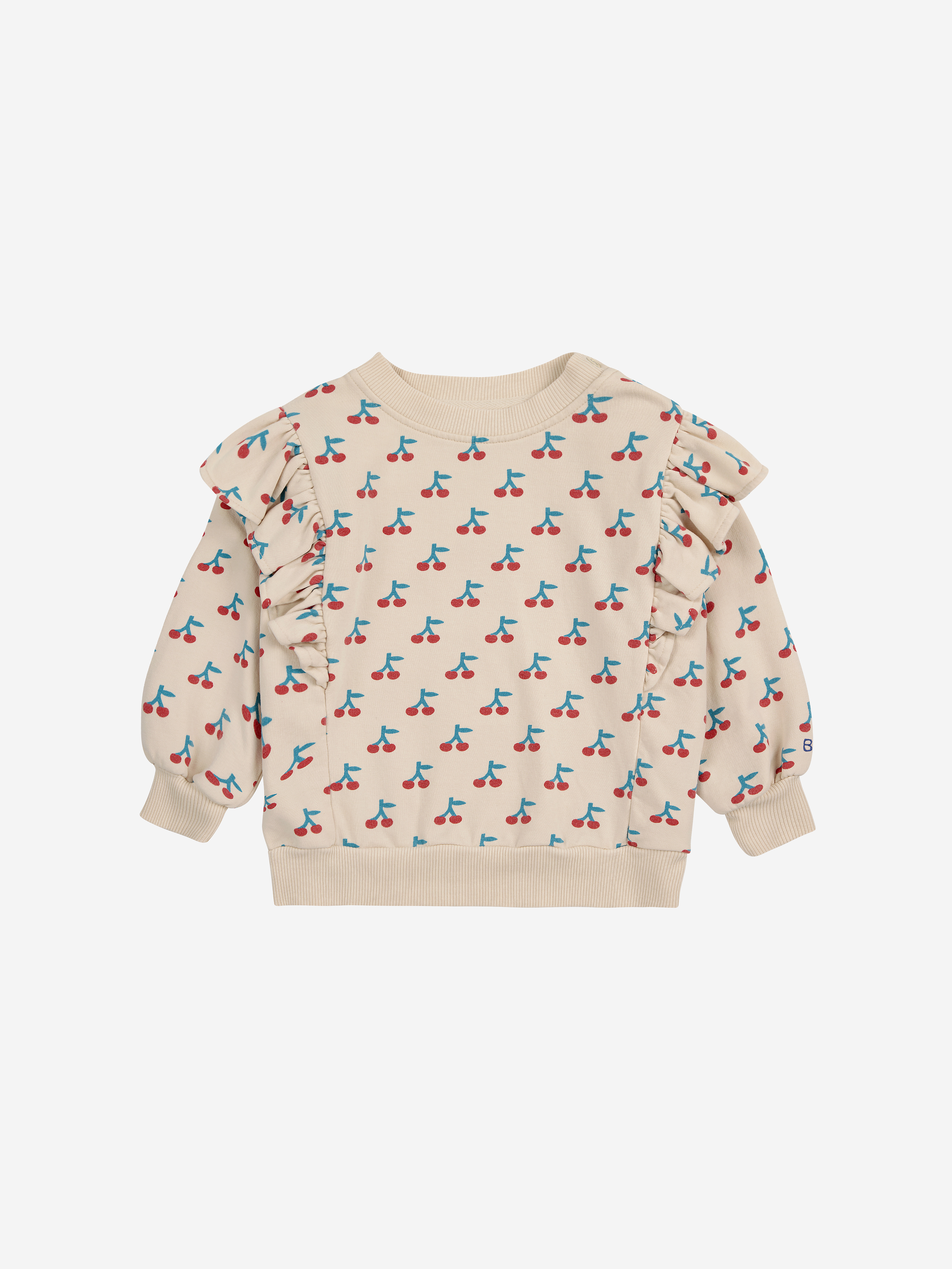 From Bobo Choses, discover Baby Cherry all over ruffle sweatshirt, a playful twist on a classic sweatshirt. Soft lines, charming details, and freedom to move — just what little dreamers need. Available in size 12M.