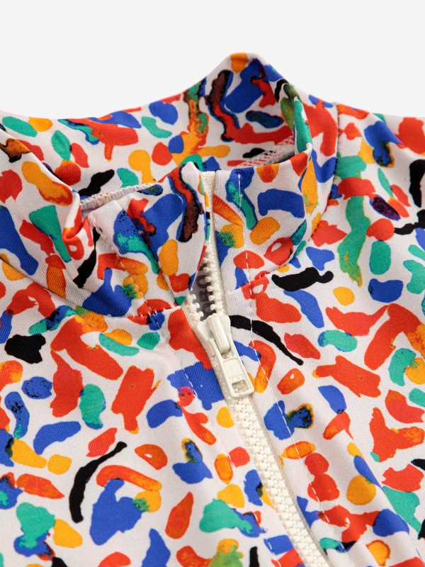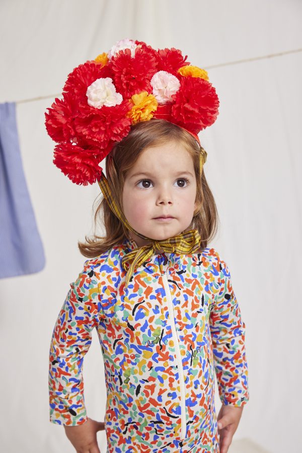 Everyday adventures feel brighter with Baby Confetti all over swim overall by Bobo Choses. Fun, comfy, and full of personality — perfect for school or weekends. in a gentle multicolor tone Available in size 12M.