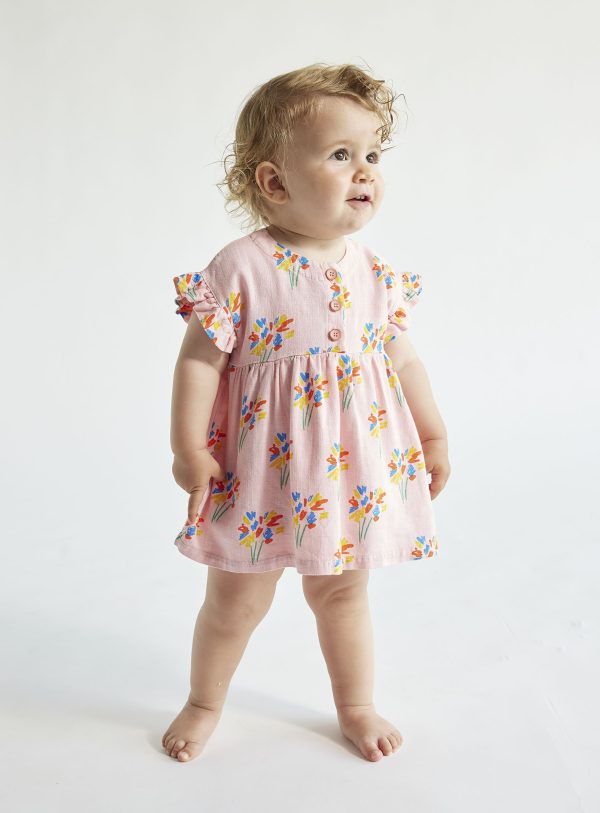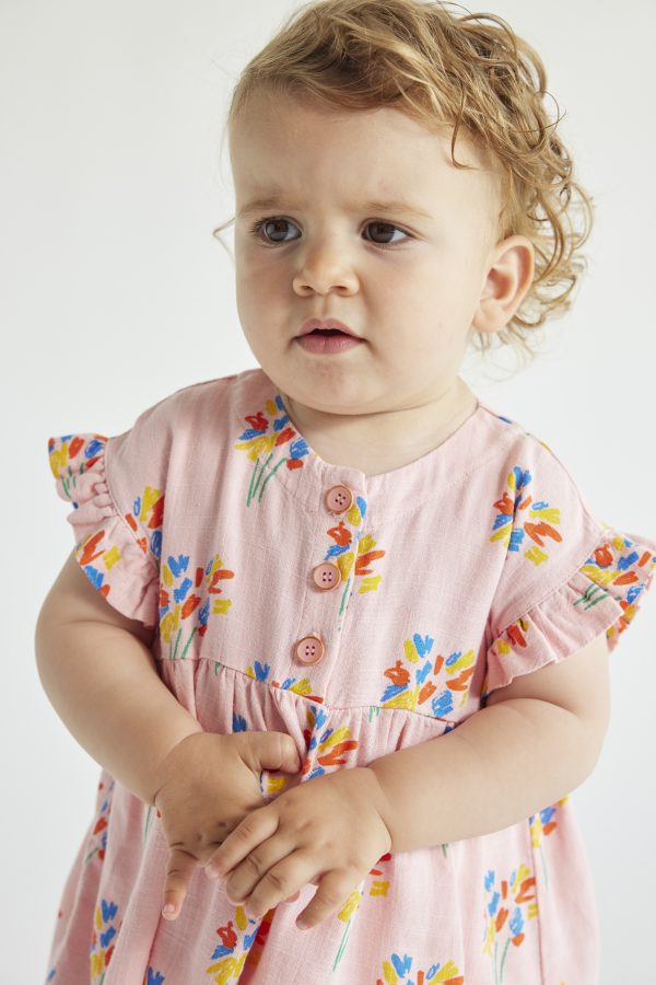 Baby Fireworks all over woven dress by Bobo Choses is a soft dress that brings comfort to every adventure. Designed for play, rest, and everything in between. In a gentle pink tone Available in size 12M.
