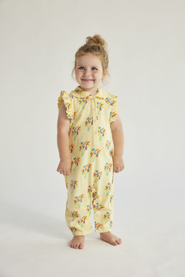 Everyday adventures feel brighter with Baby Fireworks all over woven overall by Bobo Choses. Fun, comfy, and full of personality — perfect for school or weekends. in a gentle yellow tone Available in size 12M.