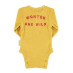 From Piupiuchick, discover Baby long sleeve body Yellow mustard w/ “wanted & wild” print, a playful twist on a classic long sleeve. Soft lines, charming details, and freedom to move — just what little dreamers need. in a gentle yellow tone Available in size 6M.