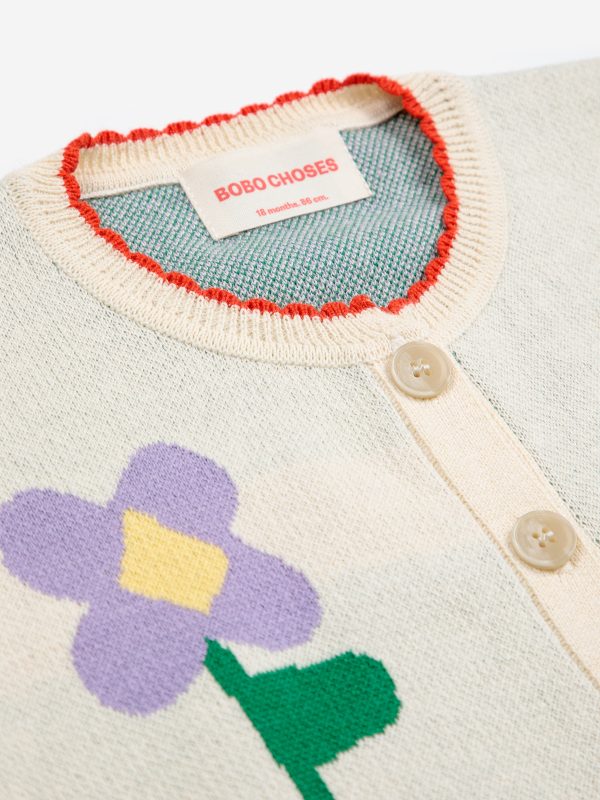 Everyday adventures feel brighter with Baby Pansy Flower cardigan by Bobo Choses. Fun, comfy, and full of personality — perfect for school or weekends. Available in size 24M.