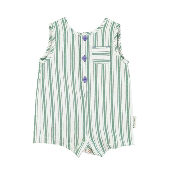 Baby Short Jumpsuit White Large Green Stripes by Piupiuchick is a soft overall that brings comfort to every adventure. Beautifully crafted from linen, it feels gentle against the skin. Designed for play, rest, and everything in between. In a gentle green tone Available in size 18M.