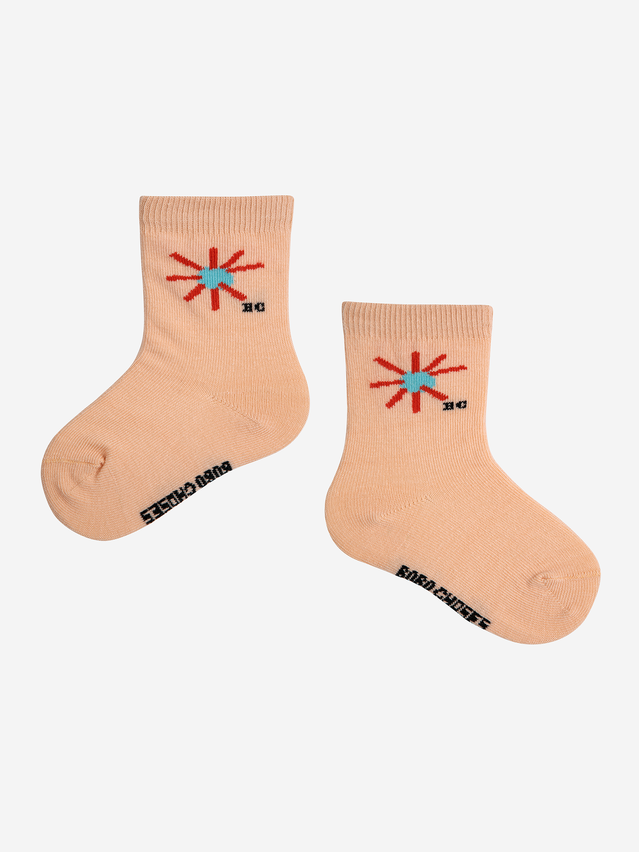 From Bobo Choses, Baby Sun short socks pack x 2 adds a spark of fun . An adorable must-have accessory for bright days and adventures. Available in size 18-19 for a perfect fit.