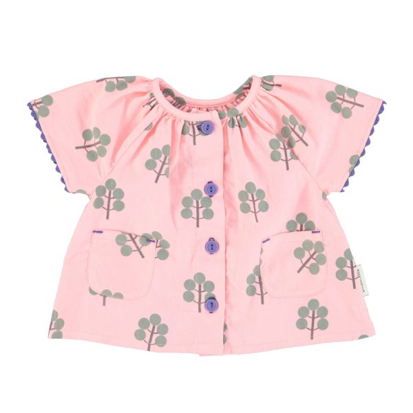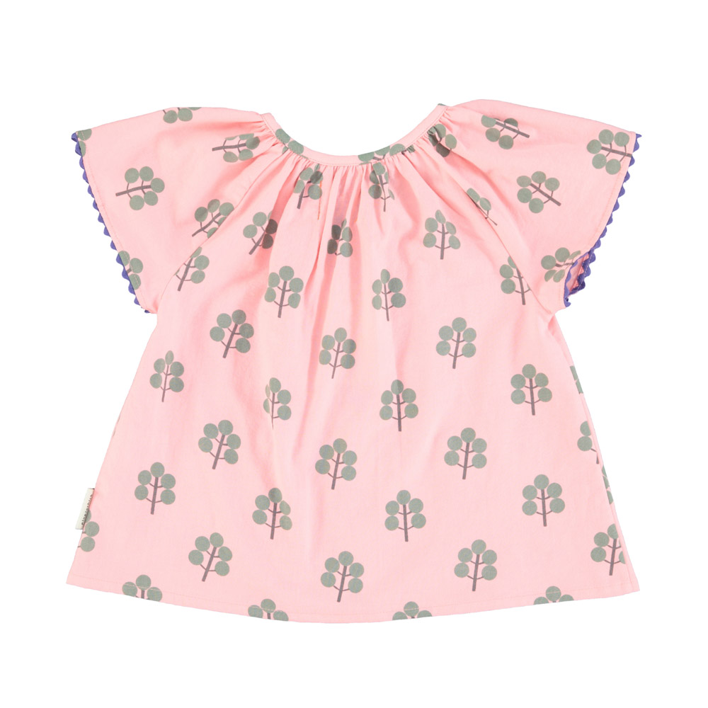 Blouse Butterfly Sleeves Pink Green Trees by Piupiuchick is a soft blouse that brings comfort to every adventure. Beautifully crafted from linen, it feels gentle against the skin. Designed for play, rest, and everything in between. In a gentle green tone Available in size 18M.