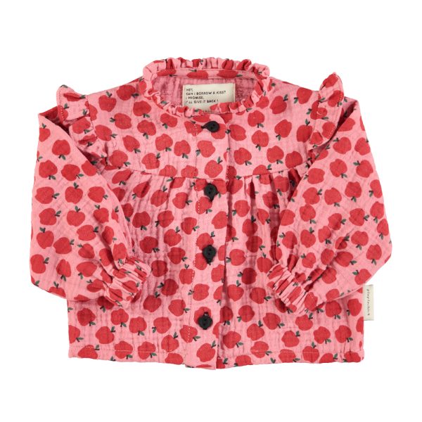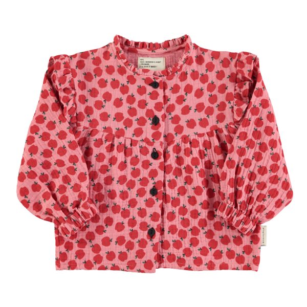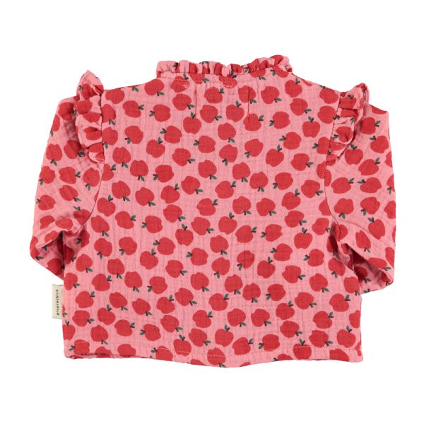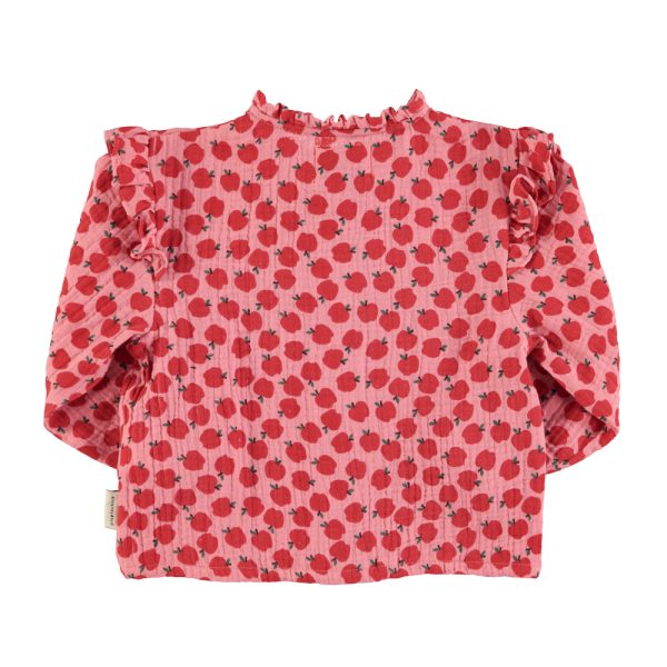 Home Shop Blouse Frills On Shoulders Light Pink Red Apples