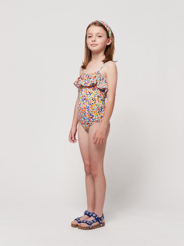 Confetti all over flounce swimsuit by Bobo Choses is a soft swimsuit that brings comfort to every adventure. Designed for play, rest, and everything in between. Available in size 10-11Y.