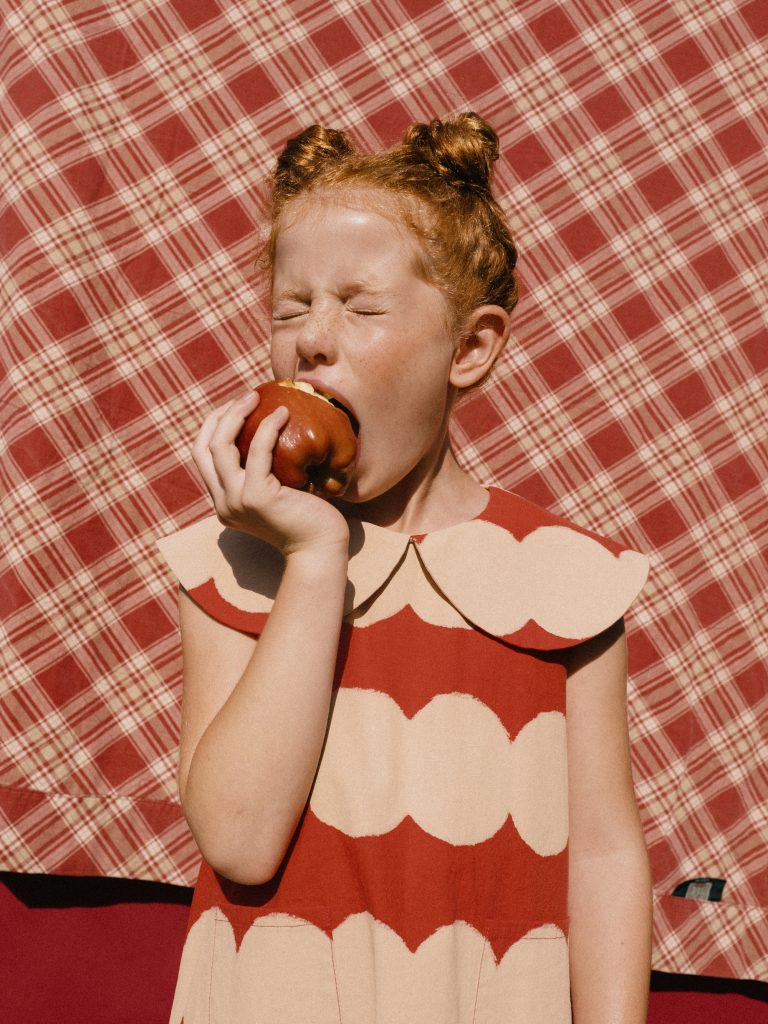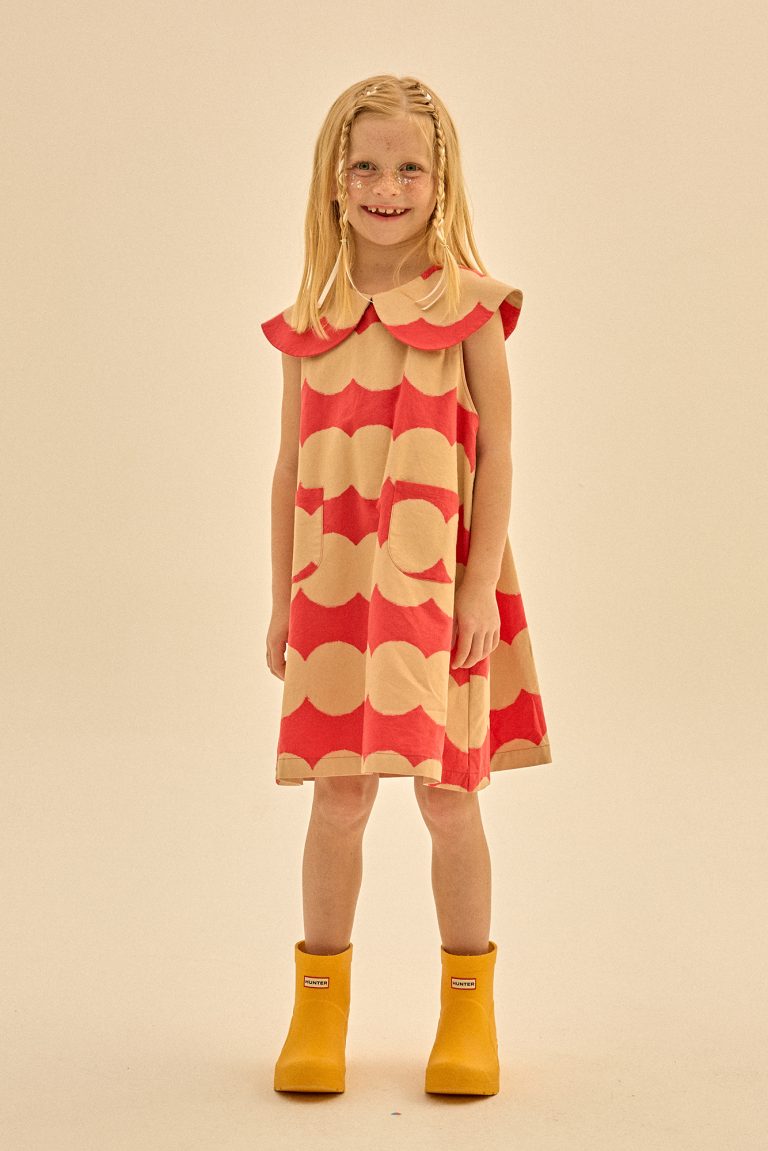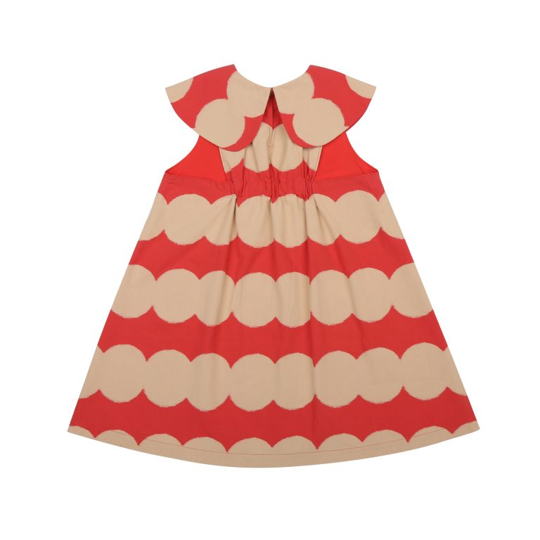 Dot Round Collar Dress by Jelly Mallow is a soft dress that brings comfort to every adventure. Designed for play, rest, and everything in between. In a gentle red tone Available in size 4-5Y.