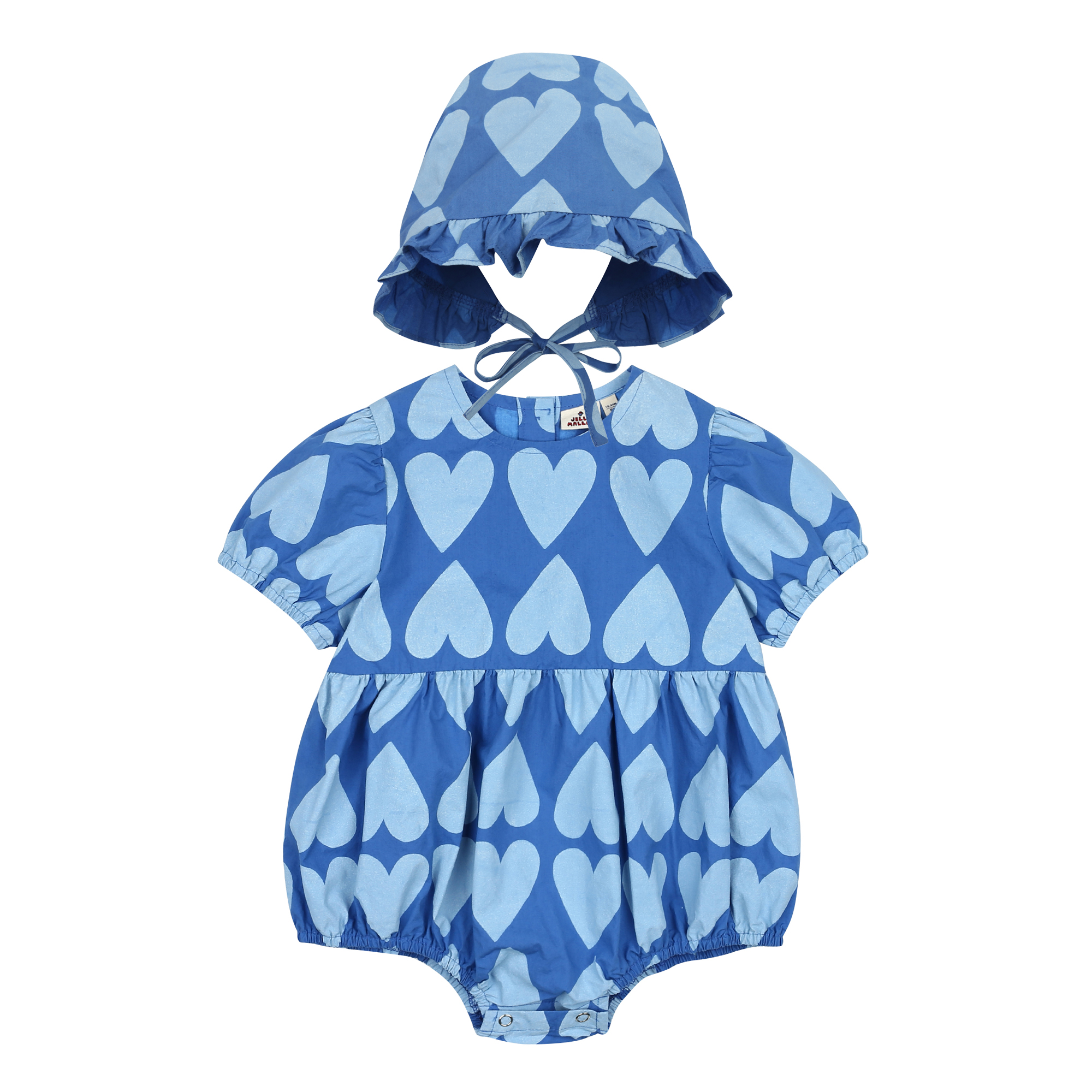 Heart Baby Romper Set by Jelly Mallow is a soft overall that brings comfort to every adventure. Designed for play, rest, and everything in between. In a gentle blue tone Available in size 24M.