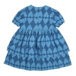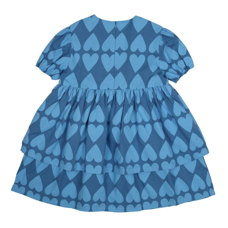 This light blue dress, made from 100% cotton poplin, features a charming heart print and a soft texture.