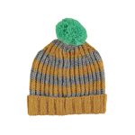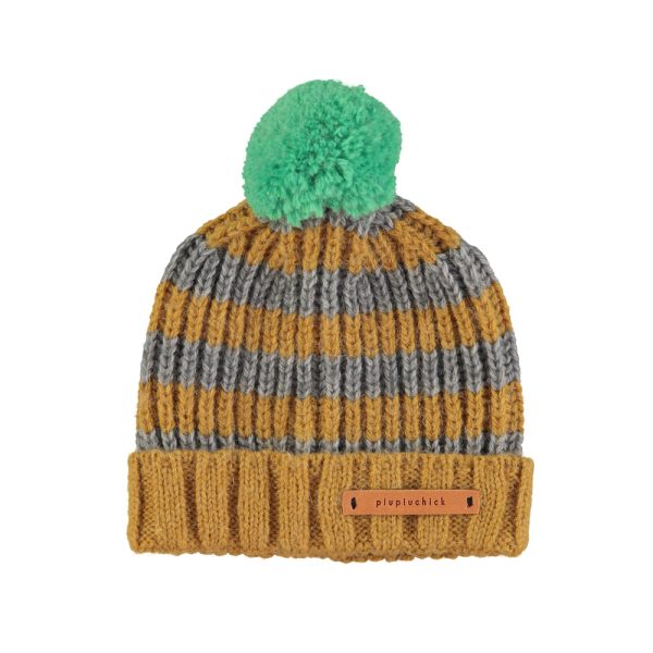 Home Shop Knitted Hat W/ Pompon Camel & Grey Stripes