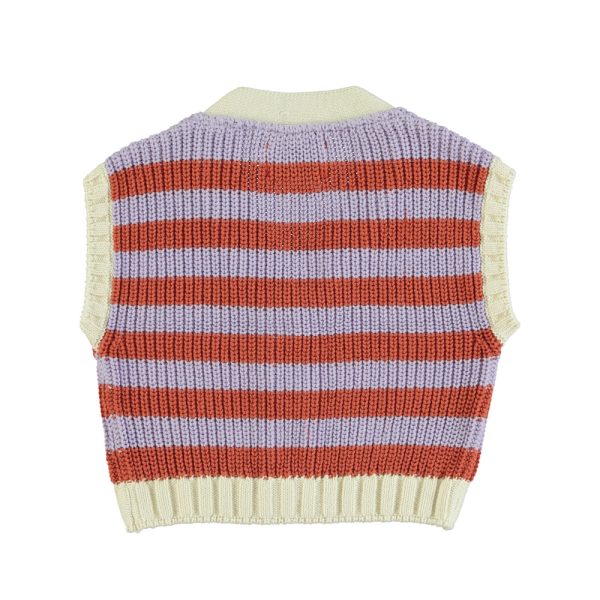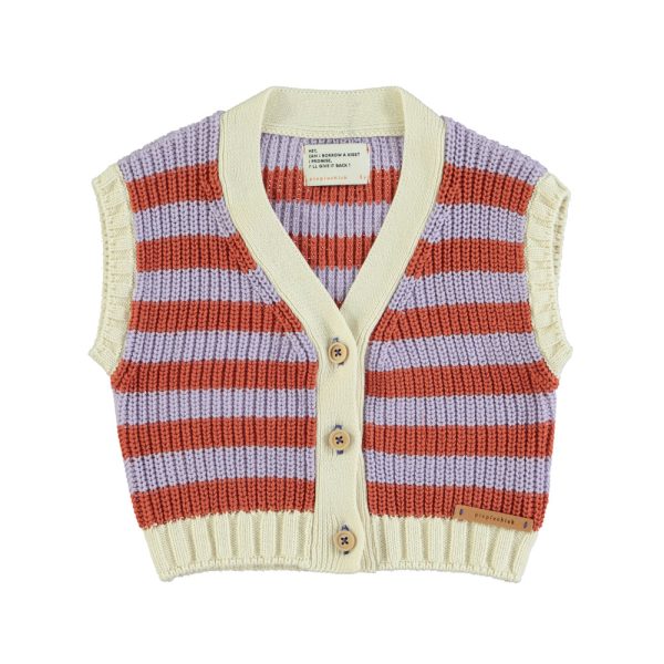 Knitted Waistcoat Lavender & Terracotta Stripes by Piupiuchick is a soft vest that brings comfort to every adventure. Designed for play, rest, and everything in between. In a gentle lavander tone Available in size 4-5Y.