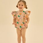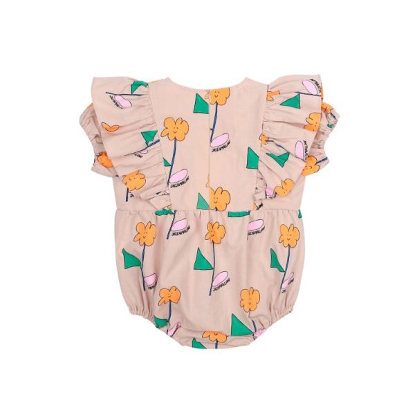 The Orange Flower Baby Suit is crafted from soft, breathable 100% cotton and adorned with a delightful orange flower print.