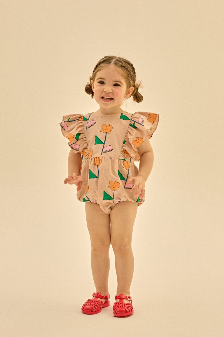 Everyday adventures feel brighter with Orange Flower Baby Suit by Jelly Mallow. Fun, comfy, and full of personality — perfect for school or weekends. in a gentle beige tone Available in size 17-18M.