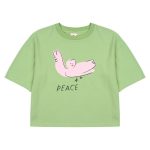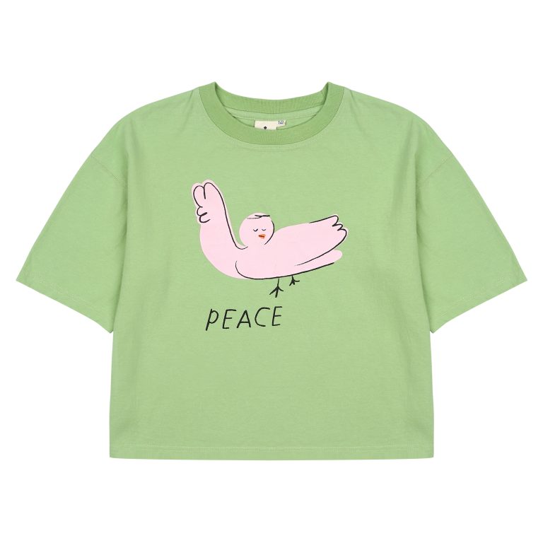 Peace T-Shirt_Green by Jelly Mallow is a soft t-shirt that brings comfort to every adventure. Designed for play, rest, and everything in between. In a gentle green tone Available in size 6-7Y.