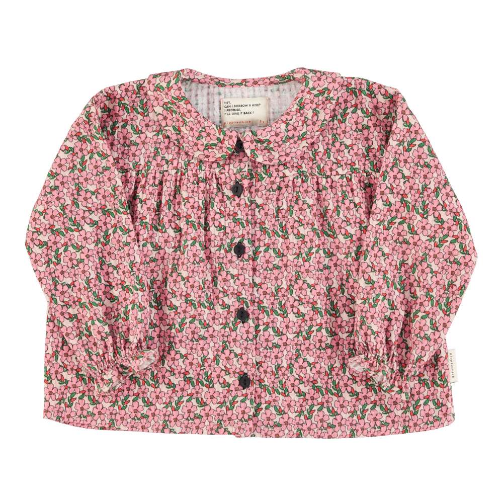 Peter Pan Collar Blouse Pink Flowers by Piupiuchick is a soft blouse that brings comfort to every adventure. Designed for play, rest, and everything in between. In a gentle pink tone Available in size 10-11Y.