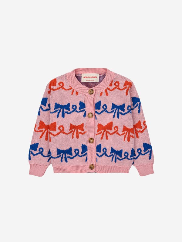 Ribbon Bow all over cardigan by Bobo Choses is a soft cardigan that brings comfort to every adventure. Designed for play, rest, and everything in between. Available in size 12M.