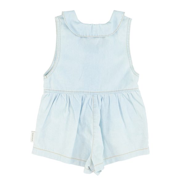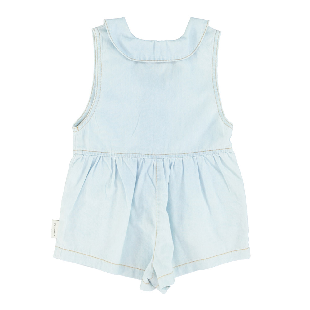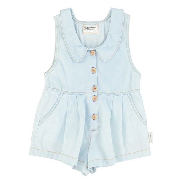 Short Jumpsuit Collar Light Blue Chambray by Piupiuchick is a soft overall that brings comfort to every adventure. Designed for play, rest, and everything in between. In a gentle blue tone Available in size 8-9Y.