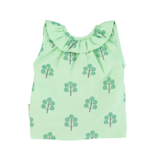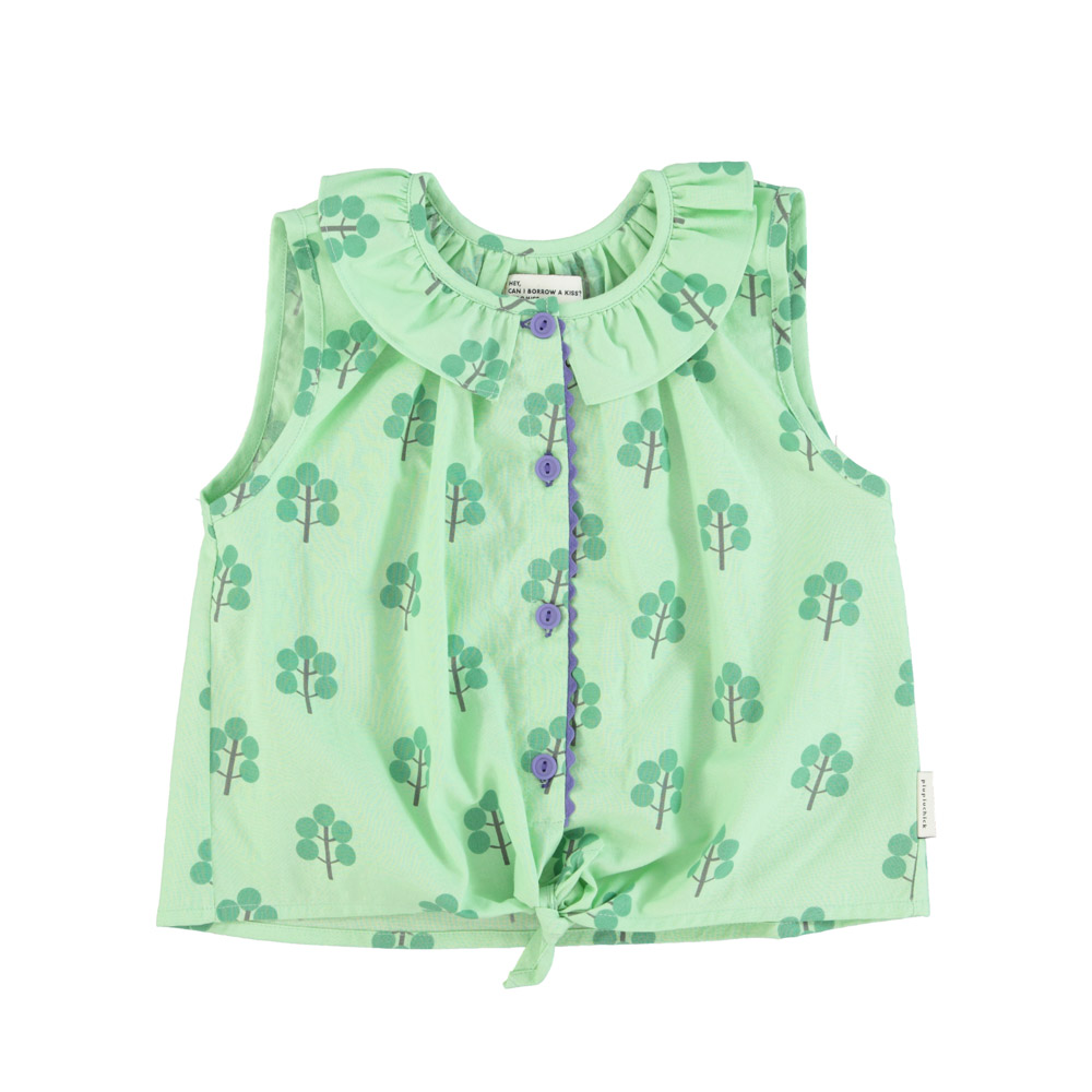 Everyday adventures feel brighter with Sleeveless Shirt Collar Green Green Trees by Piupiuchick. Fun, comfy, and full of personality — perfect for school or weekends. Crafted from linen gives it a soft and breathable touch. in a gentle green tone Available in size 18M.