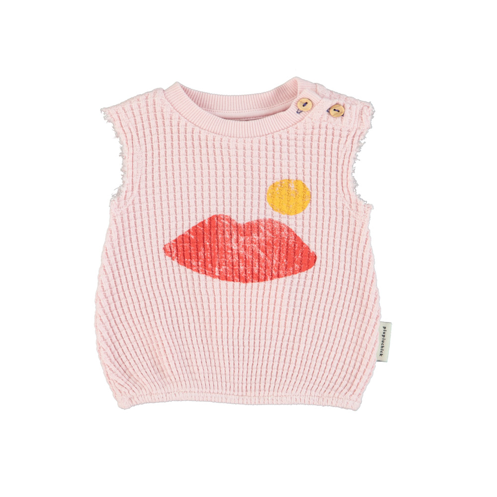 From Piupiuchick, discover Sleeveless Top Light Pink Lips Print, a playful twist on a classic top. Soft lines, charming details, and freedom to move — just what little dreamers need. in a gentle pink tone Available in size 6-7Y.