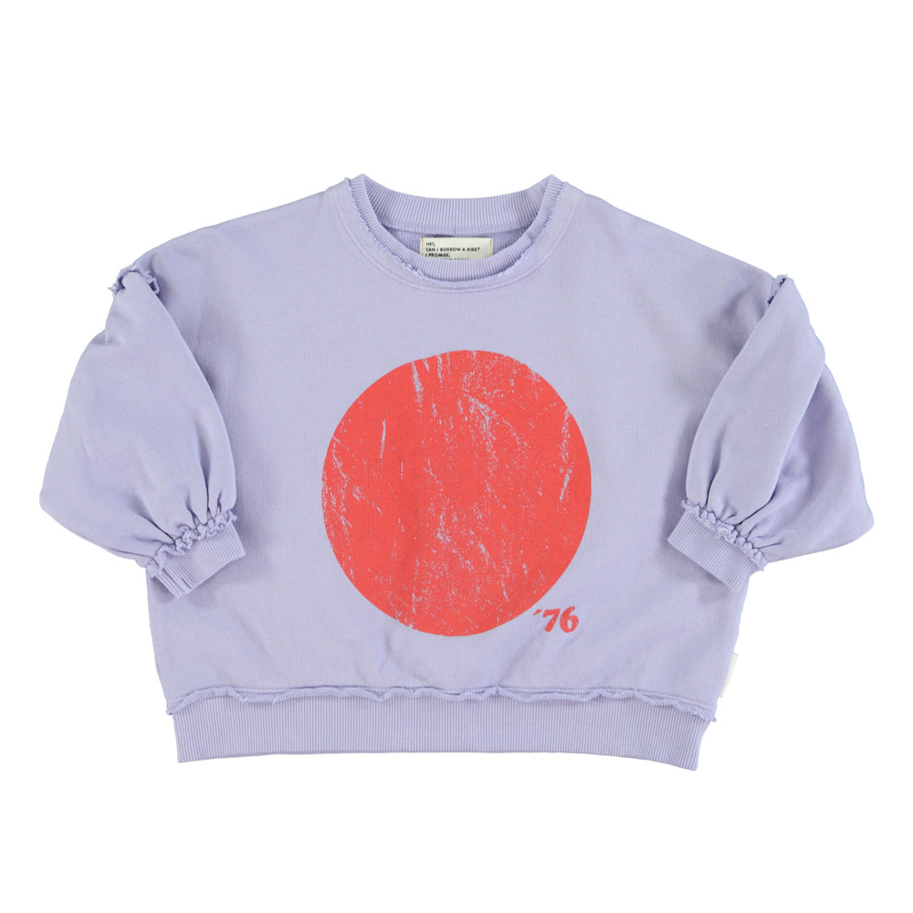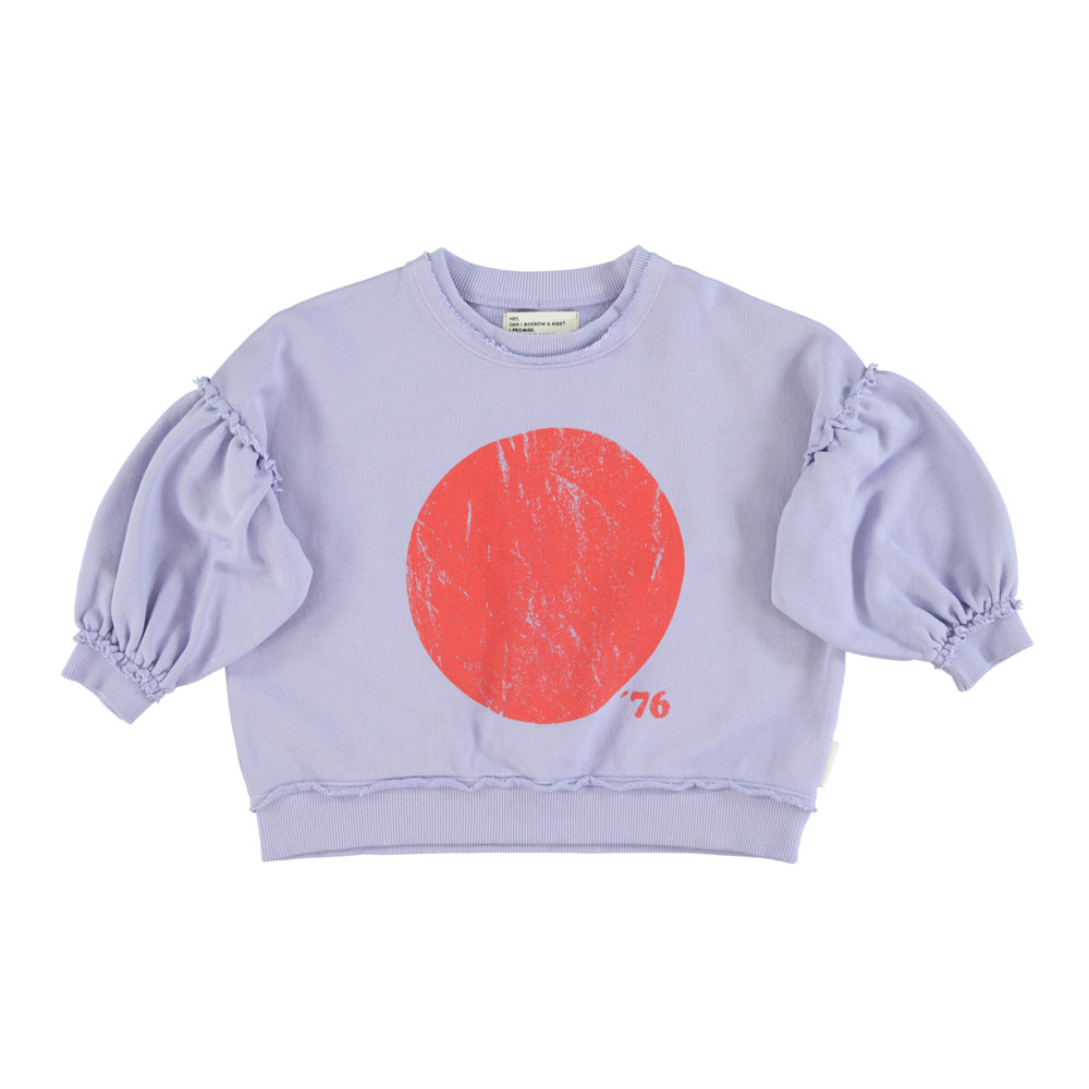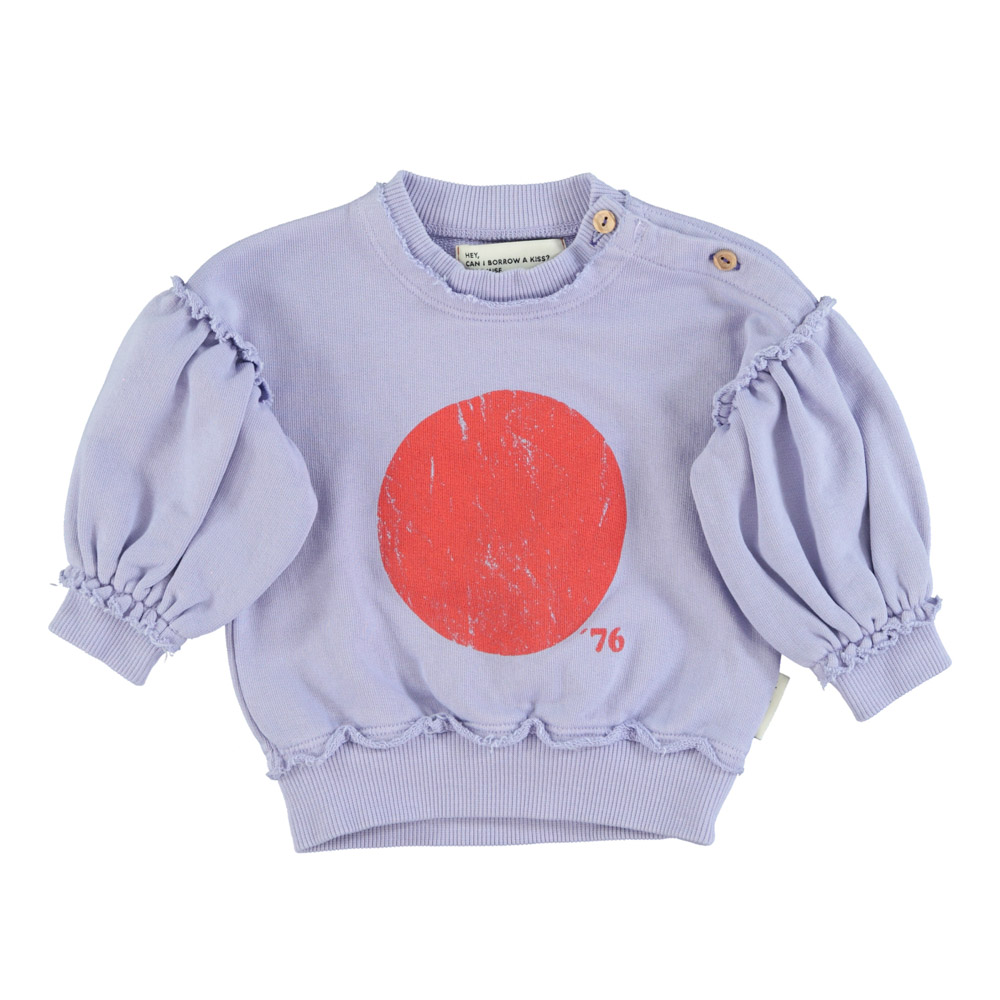 Home Shop Sweatshirt Balloon Sleeves Lavender Red Circle Print