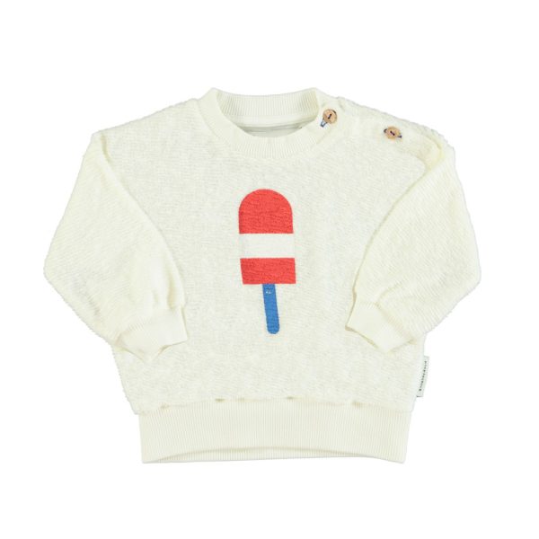 Sweatshirt Ecru Ice Cream Print by Piupiuchick is a soft sweatshirt that brings comfort to every adventure. Designed for play, rest, and everything in between. In a gentle ecru tone Available in size 24M.