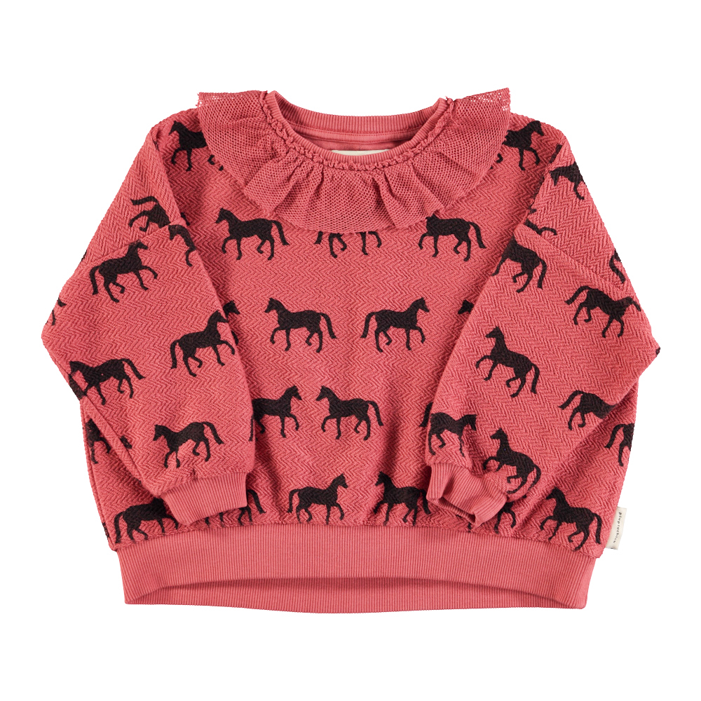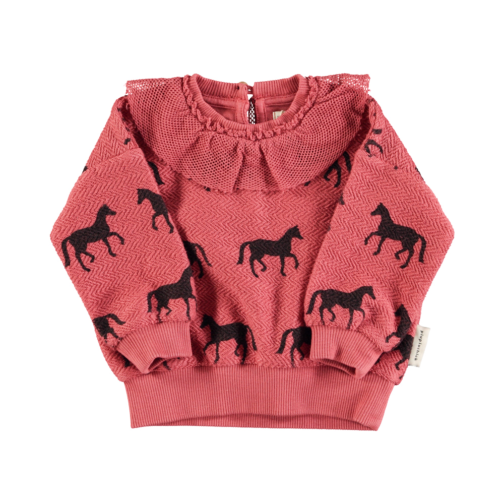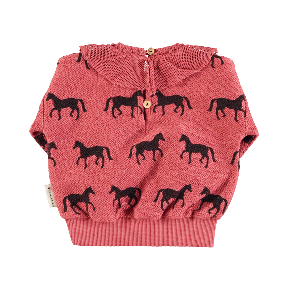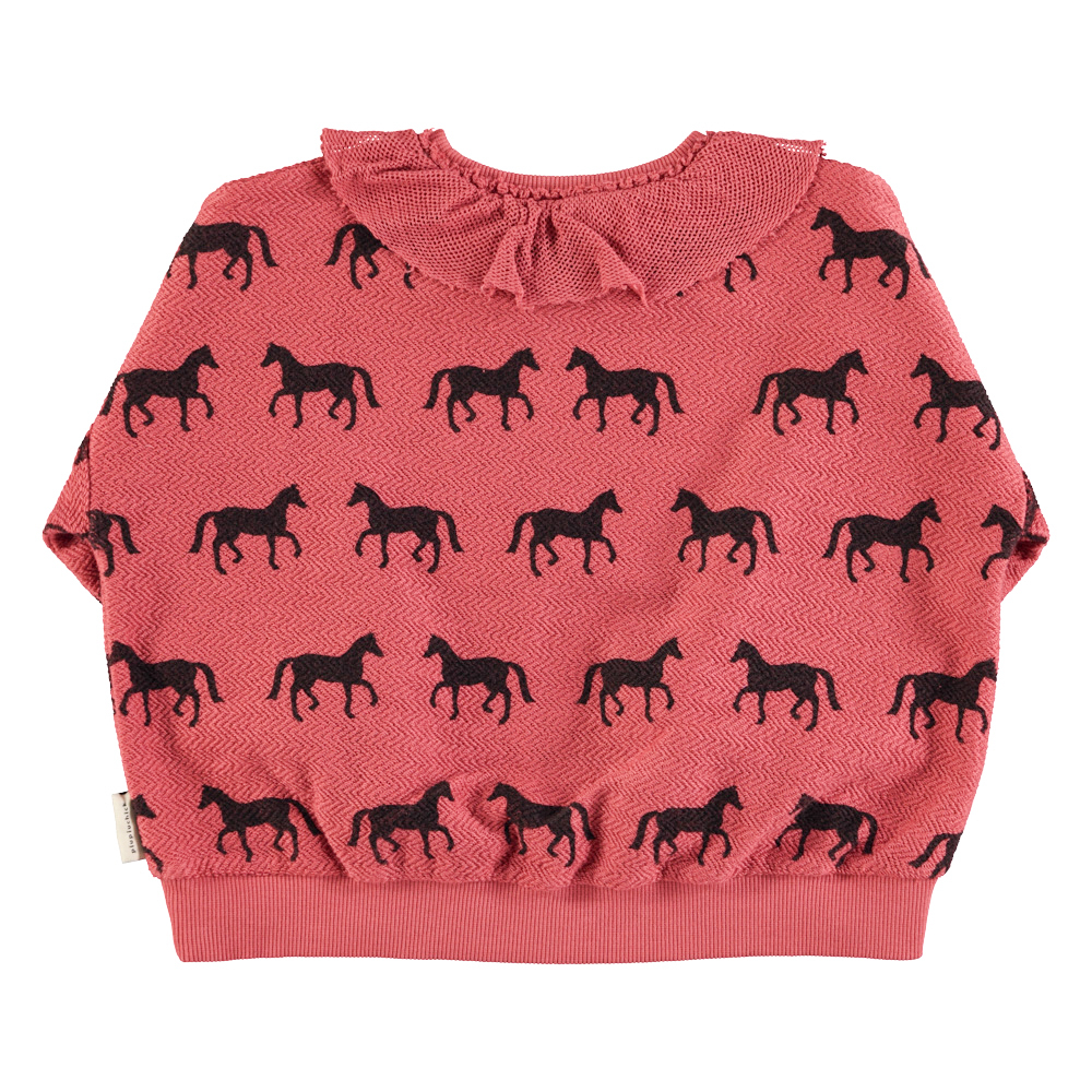 Everyday adventures feel brighter with Sweatshirt Old Pink Black Horses by Piupiuchick. Fun, comfy, and full of personality — perfect for school or weekends. in a gentle black tone Available in size 6-7Y.