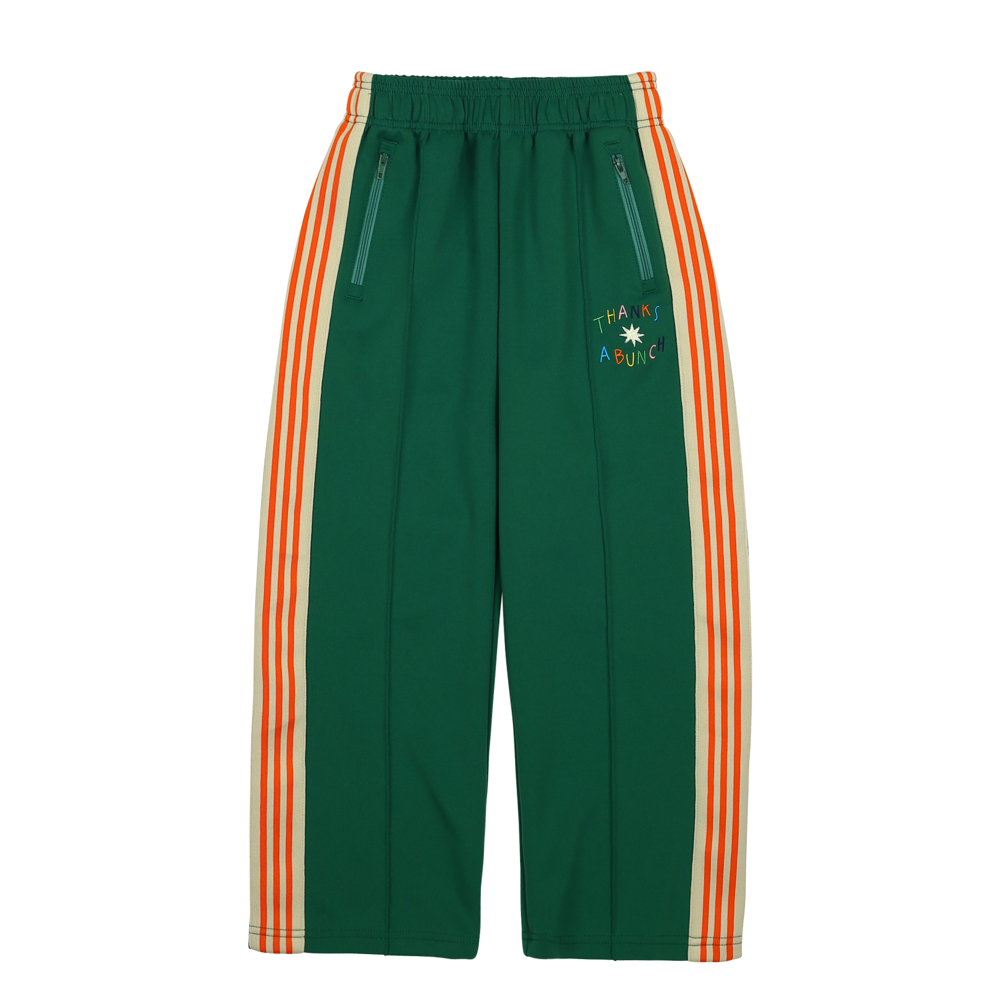 From Jelly Mallow, discover Thanks Track Pants_Green, a playful twist on a classic pants. Soft lines, charming details, and freedom to move — just what little dreamers need. in a gentle green tone Available in size 10-11Y.