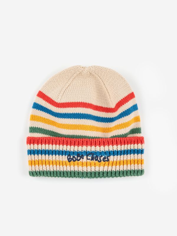 Tic Tac Toe Knitted Striped Beanie Bobo Choses by Bobo Choses is a stylish little detail that completes any outfit. With its white hue, it adds a cheerful twist to daily looks. Lovingly crafted from 100% cotton for comfort and long wear. Perfect for school days, outings, and everything in between.