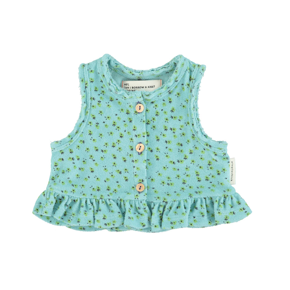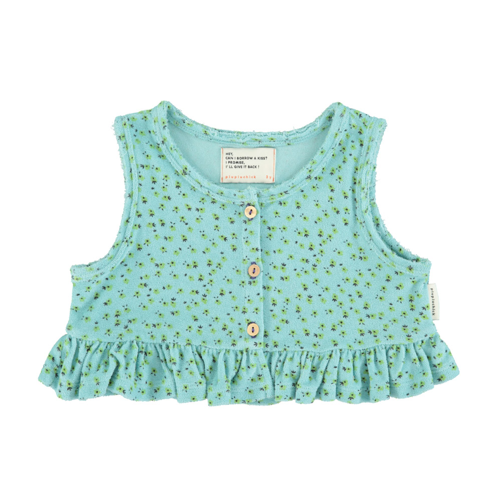 Top Light Blue Yellow Flowers by Piupiuchick is a soft top that brings comfort to every adventure. Designed for play, rest, and everything in between. In a gentle yellow tone Available in size 12M.