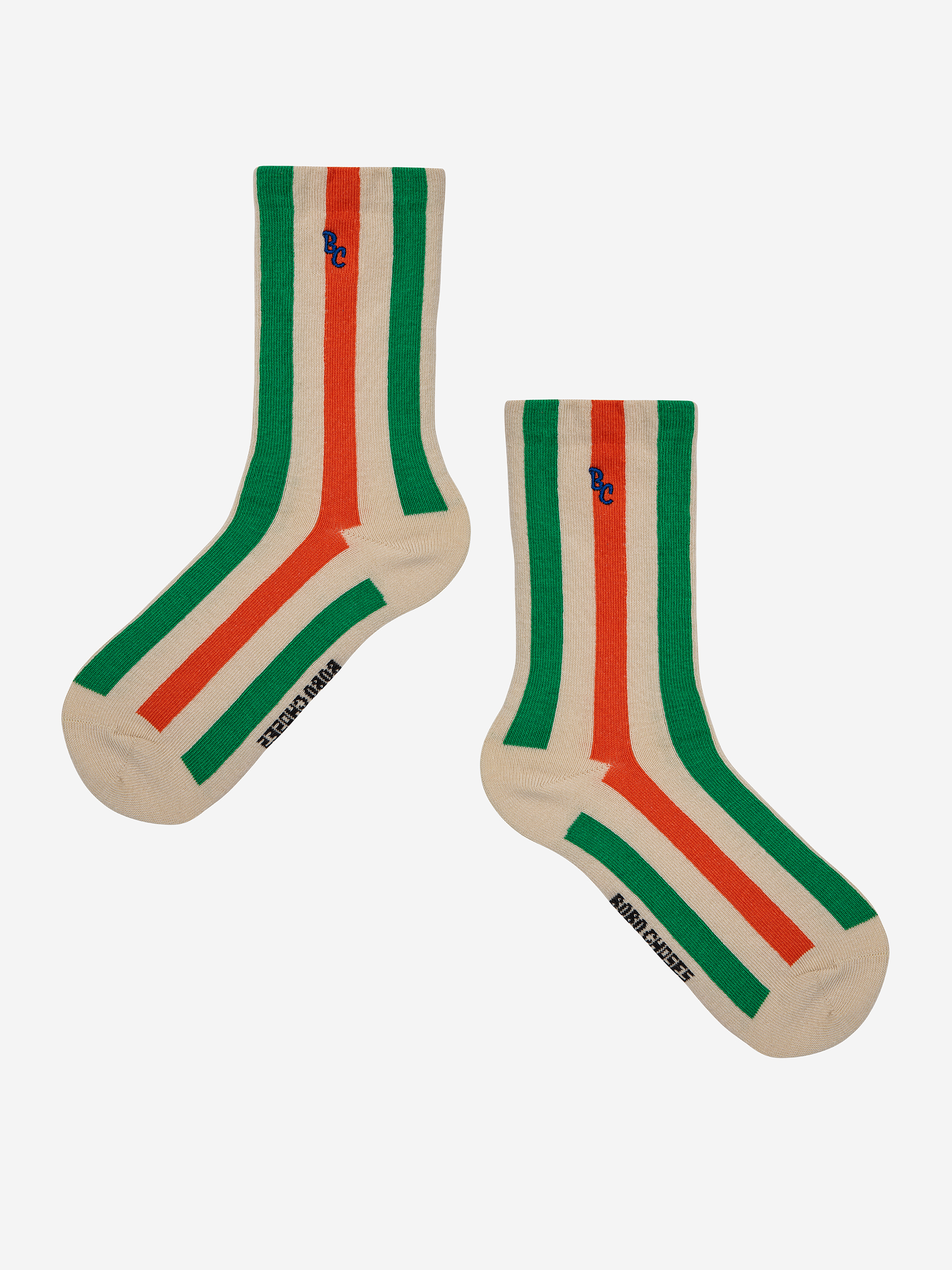 Vertical Stripes long socks by Bobo Choses is a stylish little detail that completes any outfit. Perfect for school days, outings, and everything in between.