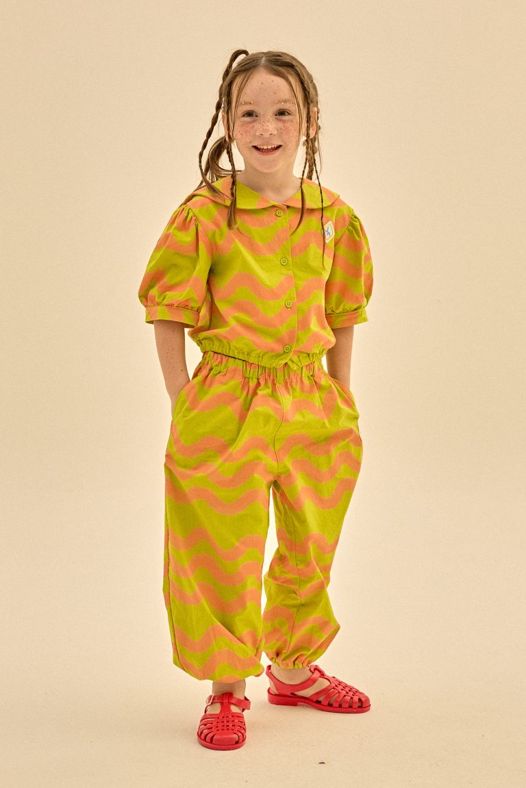 Everyday adventures feel brighter with Wave Sailor Collar Blouse by Jelly Mallow. Fun, comfy, and full of personality — perfect for school or weekends. in a gentle green tone Available in size 8-9Y.